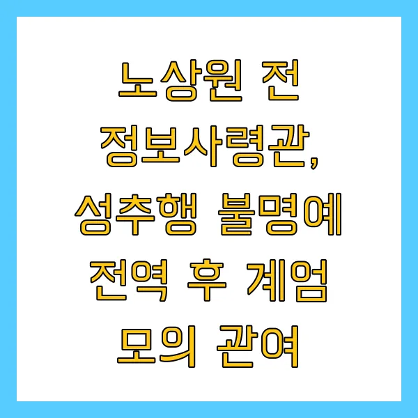 2018년 국군의 날, 당시 육군정보학교장이었던 노상원은 한 여군 교육생의 인생을 송두리째 짓밟았습니다. 학교장이라는 직위를 이용해 교육생을 술자리에 불러내고 강제로 신체 접촉을 했다는 혐의입니다. 피해자가 "부대에 일이 생겨서 가봐야 한다"며 자리를 피하려 했지만, 노상원은 "말도 안 되는 소리!"라며 추행을 멈추지 않았습니다. 심지어 전속부관이 운전하는 차 안에서까지 성추행은 계속되었다는 충격적인 증언까지 나왔습니다. 피해자는 엄청난 두려움과 수치심 속에서도 용기를 내 소속 부대 법무실에 신고했습니다. 육군은 즉각 노상원을 보직 해임하고 형사 입건했죠. 군사법원은 징역 1년 6개월을 선고했지만, 집행유예조차 없었습니다. 하지만 놀랍게도 성범죄자 신상정보 등록(고지 명령)은 면제 되었습니다. 정보사 고위직이라는 신분 때문에 봐주기 판결이 아니냐는 비판이 쏟아졌습니다. "피고인이 모든 지위와 명예를 상실했다"는 이유로 형량을 낮춰준 것 역시 납득하기 어려운 부분입니다. 권력의 그늘 아래 숨겨진 추악한 진실입니다!
