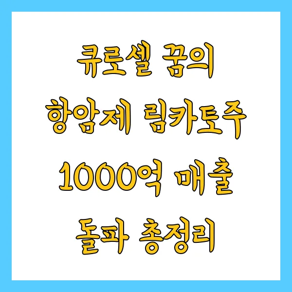 림카토주는 뛰어난 임상 결과를 바탕으로 혈액암 치료의 새로운 희망으로 떠오르고 있습니다. 1000억 매출 돌파라는 야심찬 목표가 현실이 될지는 아직 미지수지만, 림카토주의 등장은 CAR-T 치료제 시장의 성장과 암 정복을 향한 인류의 노력에 큰 획을 그을 것임은 분명합니다. 앞으로 큐로셀이 끊임없는 연구 개발과 환자 중심의 접근을 통해 림카토주를 더욱 발전시켜, 더 많은 환자들에게 희망을 전달하는 기업으로 성장하기를 기대하며 응원합니다!